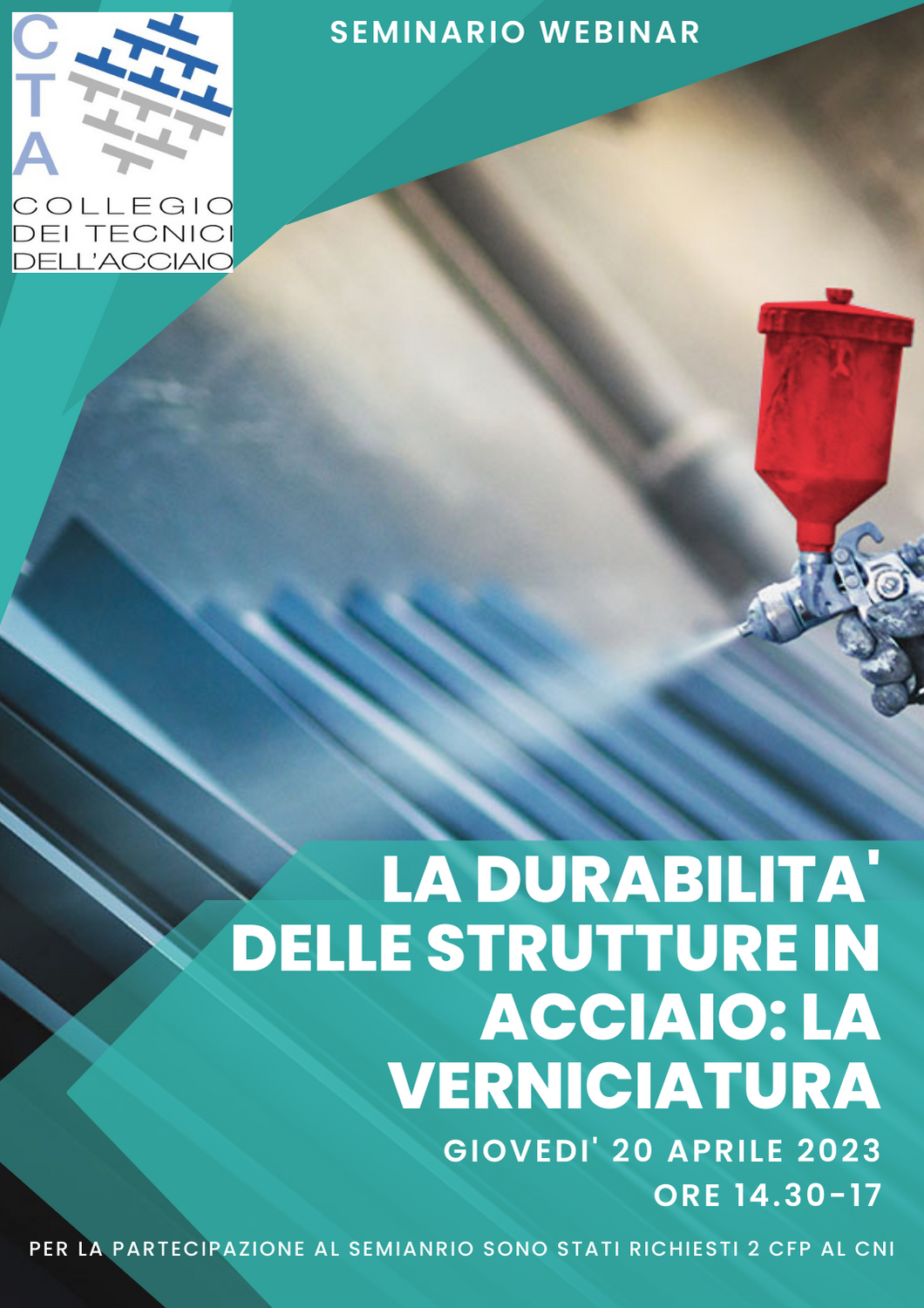 20 APRILE 2023 – SEMINARIO WEBINAR: LA DURABILITA’ DELLE STRUTTURE IN ACCIAIO: LA VERNICIATURA