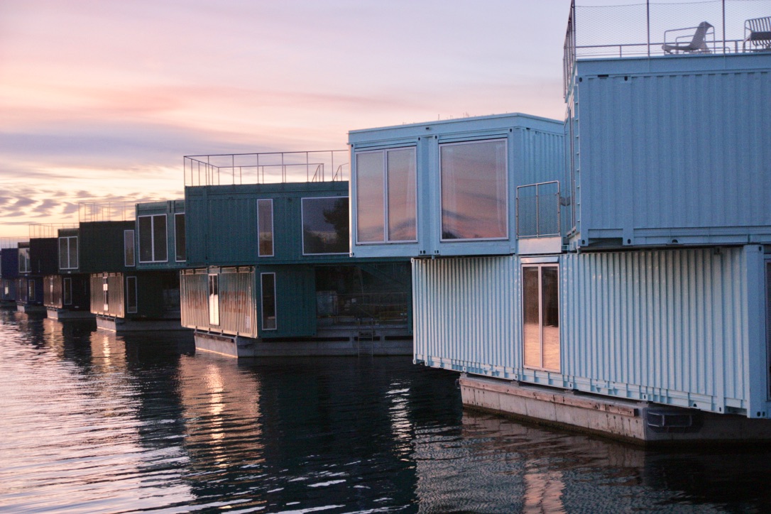 Si tratta di un villaggio galleggiante di 72 appartamenti realizzato a Refshaleøen, isola nel porto di Copenaghen, per far fronte alla carenza di alloggi per studenti. Nella capitale danese, come avviene nella maggior parte delle città metropolitane, la domanda abitativa supera di gran lunga l’offerta; un numero crescente di giovani, attratto dall’offerta formativa e culturale del territorio, è in costante ricerca di alloggi in aree centrali a prezzi accessibili. In questo contesto, l’industria pesante si sposta dai porti suburbani e le ex aree portuali vengono destinate ad interventi di riqualificazione urbana e trasformate in quartieri residenziali, soddisfacendo però solo in minima parte la domanda di alloggi. È così che Urban Rigger viene costruito direttamente sull’acqua, non occupando nuovo suolo urbano e realizzando alloggi a basso costo in aree centrali: infatti in soli 15 minuti in bicicletta si raggiunge il centro della capitale.[…]