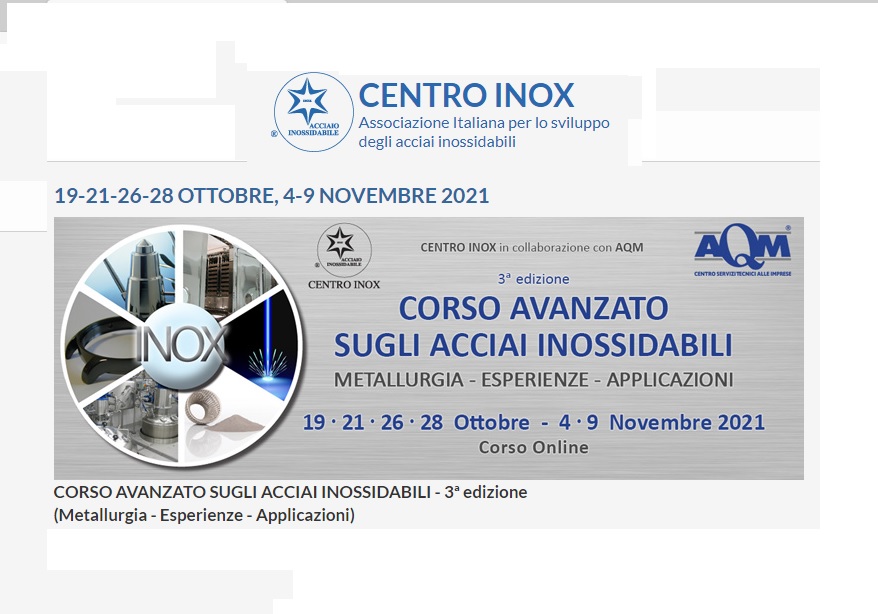 Corso online organizzato dal Centro Inox in collaborazione con AQM (Centro Servizi Tecnici alle Imprese).
