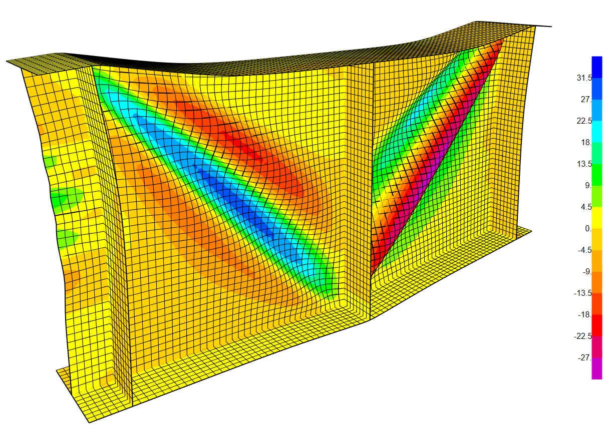 Si proceda ad una suddivisione degli elementi frame in 5 parti, di egual lunghezza. Si esegua un’analisi modale e si attribuisca un’imperfezione basata sul primo modo, scalata con una ampiezza massima pari a L/500. Si fa notare che questa volta, a differenza dei casi precedenti, l’imperfezione è stata assegnata su base modale. Il motivo è che l’analisi di buckling restituirebbe due forme distinte per il semi arco di sinistra e quello di destra, mentre l’analisi modale distorce entrambi i semi archi. Anche se non visibile, i nodi dei due semi archi non risulteranno più allineati. Questo corrisponde all’aver dato contemporaneamente un’imperfezione ?0 ed una ?0. Si effettui una prima analisi di buckling volta a determinare il valore critico del carico applicato. […]