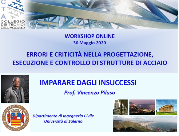 Nella giornata del 30 maggio 2020 si è tenuto il primo corso online organizzato dal Collegio dei Tecnici dell’Acciaio (CTA), intitolato: “Errori e criticità nella progettazione, esecuzione e controllo di strutture di acciaio” (figura 1).