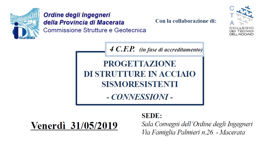 Notizie dal CTA > Seminario: PROGETTAZIONE DI STRUTTURE IN ACCIAIO SISMORESISTENTI: CONNESSIONI (Macerata)