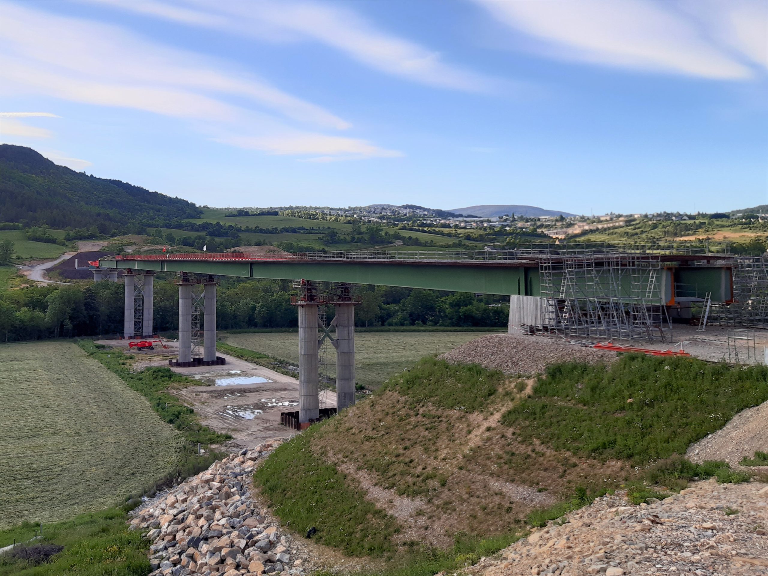 I lavori di estensione della Strada Nazionale RN88 (da Toulouse a Lione – Francia), hanno portato alla recente realizzazione della circonvallazione della città di MENDE grazie alla costruzione del Viadotto del Lot. Un ponte di 323 m di lunghezza in 5 campate (53 m – 3×75 m – 45 m). Si tratta del primo ponte stradale a doppia azione mista realizzato in Francia. Rispetto ai ponti misti tradizionali, questa architettura permette di ottimizzare le quantità di calcestruzzo e di acciaio in prossimità delle pile, grazie all’aggiunta di una soletta inferiore. Questa tecnica necessita di adattamenti nei dettagli costruttivi già alla concezione del progetto. Tale metodo costruttivo permette di sfruttare appieno le capacità plastiche dei materiali: in corrispondenza delle pile si passa da una rottura per instabilità a una rottura plastica. Il ponte è stato equipaggiato con un sistema di misurazione delle deformazioni e delle temperatura, in 150 punti di misura ad alta frequenza, ed entrerà in servizio a fine 2023.