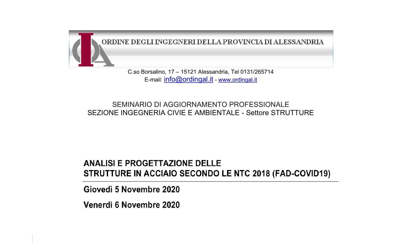 WEBINAR: “ANALISI E PROGETTAZIONE DELLE STRUTTURE IN ACCIAIO SECONDO LE NTC 2018” (Ordine Ingegneri Alessandria)