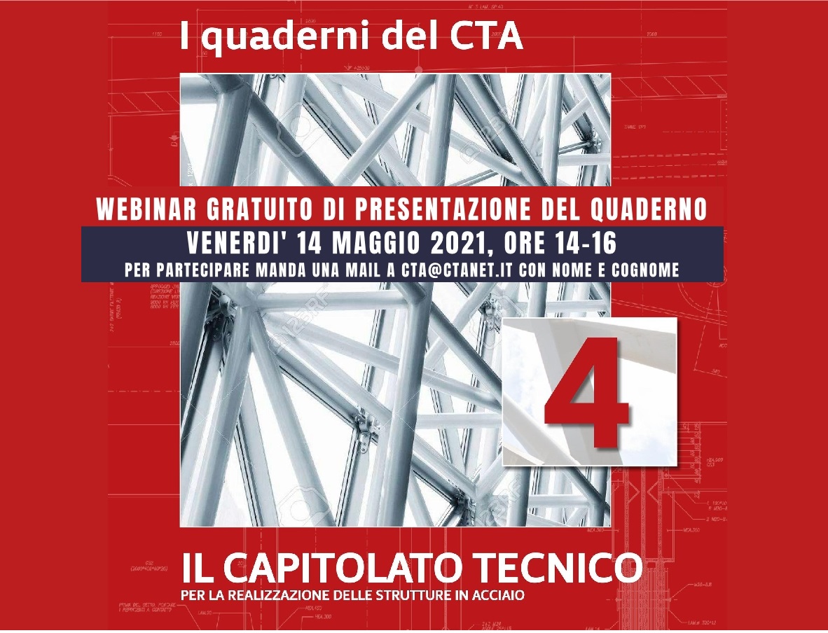 Webinar gratuito di presentazione del QUADERNO CTA N. 4 “IL CAPITOLATO TECNICO PER LA REALIZZAZIONE DELLE STRUTTURE IN ACCIAIO”