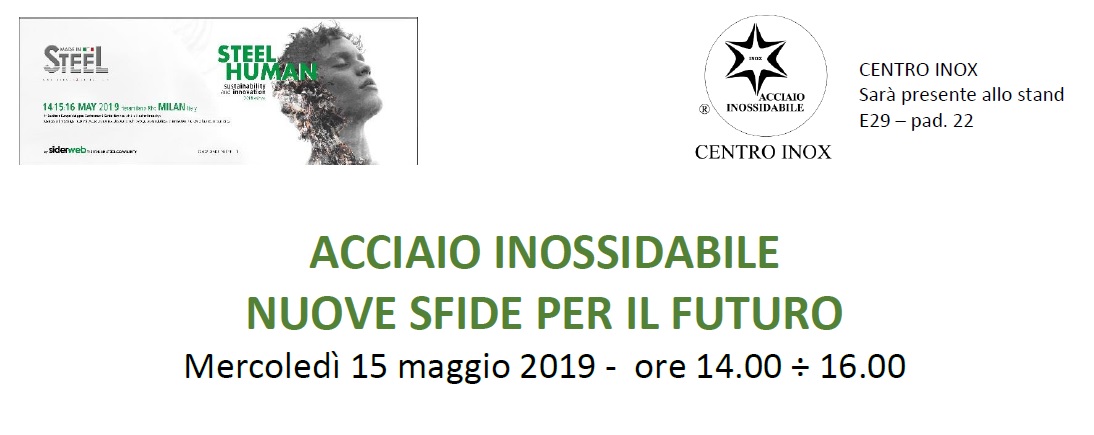 Workshop: ACCIAIO INOSSIDABILE – NUOVE SFIDE PER IL FUTURO Fieramilano Rho, Milano – 15/05/2019